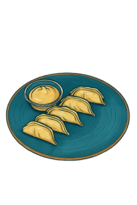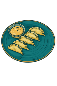 Japońskie pierożki z wegetariańskim farszem + sos spicy mayo.
