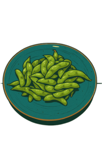 Ciepłe fasolki sojowe z solą morską i masłem, posypane prażonym sezamem.