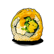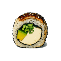 Ryż, nori, serek, ogórek, takuan, awokado, sos mango.