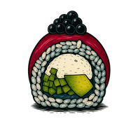 Ryż, nori, serek, ogórek, awokado, tuńczyk, sos śliwkowy, kawior czarny.