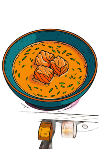 Delikatnie pikantna zupa na bazie mleczka kokosowego z łososiem i warzywami.
