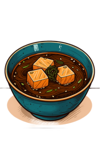 Na bazie bulionu dashi z dodatkiem pasty sojowej miso, podawana z glonami wakame, grzybami shitake, tofu, sezamem i szczypiorem